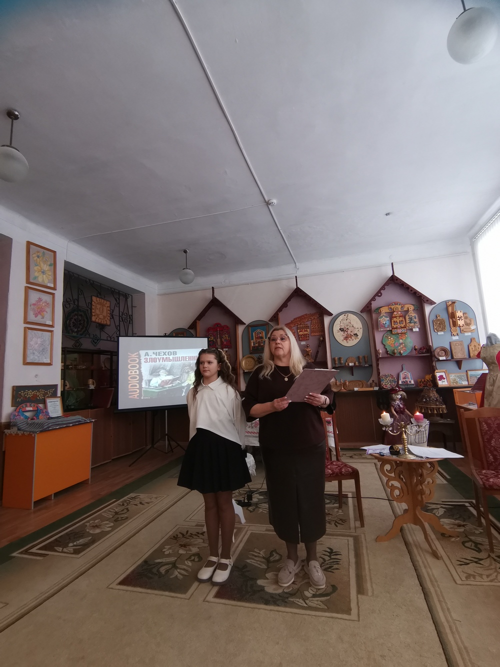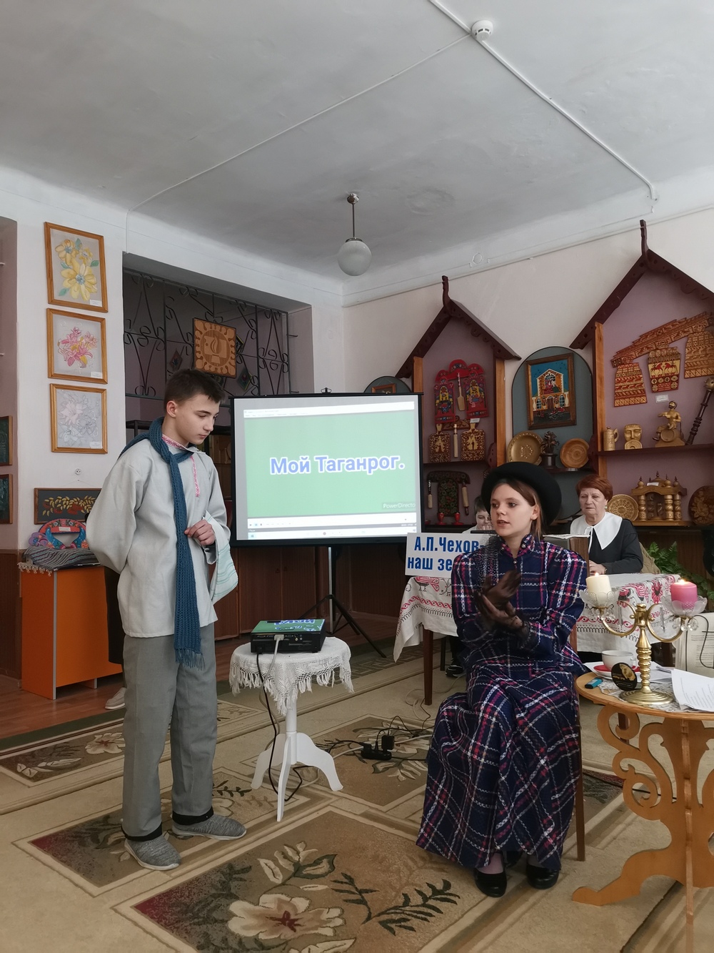 Чехов очень любил музыку. Слушание музыки давало писателю ощущение радости жизни. Пока в музее собирались гости, стены дома наполняли звуки флейты. Украшением данного мероприятия стала инсценировка рассказа А.П. Чехова «Размазня», которую исполнили воспитанники студии театральных миниатюр «Подмостки (руководитель Фролова Н.В.) Чупрун Демьян и Сурикова Арина.