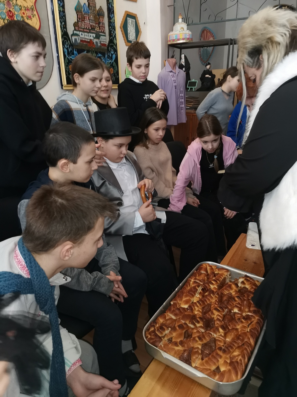 Чеховская неделя завершилась в пятницу 30 декабря литературной гостиной «Писатель на все времена». Организовали это мероприятие воспитанники 3 отряда под руководством воспитателя Силаевой Надежды Анатольевны и педагога-библиотекаря Дудка Светланы Юрьевны. Гостями праздника были воспитанники 4 отряда. В первой части праздника ребята совершили путешествие по страницам книг известного земляка. Кумейко Илья, Погорелова Яна и Бильский Максим представили зрителям инсценировку фрагмента пьесы «Медведь». Затем ребята вместе с авторами клипа о Таганроге вспомнили исторические места, связанные с именем А.П. Чехова. В заключении руководитель филиала Булохова Н.С. рассказала присутствующим о традициях в семье Чеховых, в том числе о приготовлении известного пирога с курагой «Веселопот», который выпекали к Рождеству или к Новому году. В таком пироге обычно запекали «гривенник», который приносил весь год счастье тому, кто его находил в пироге. Поддерживая чеховскую традицию, ребятам тоже был предложен пирог «с сюрпризом». Ребята с удовольствием искали и нашли в некоторых кусочках фрагменты фольги, которые символизировали «гривенник».