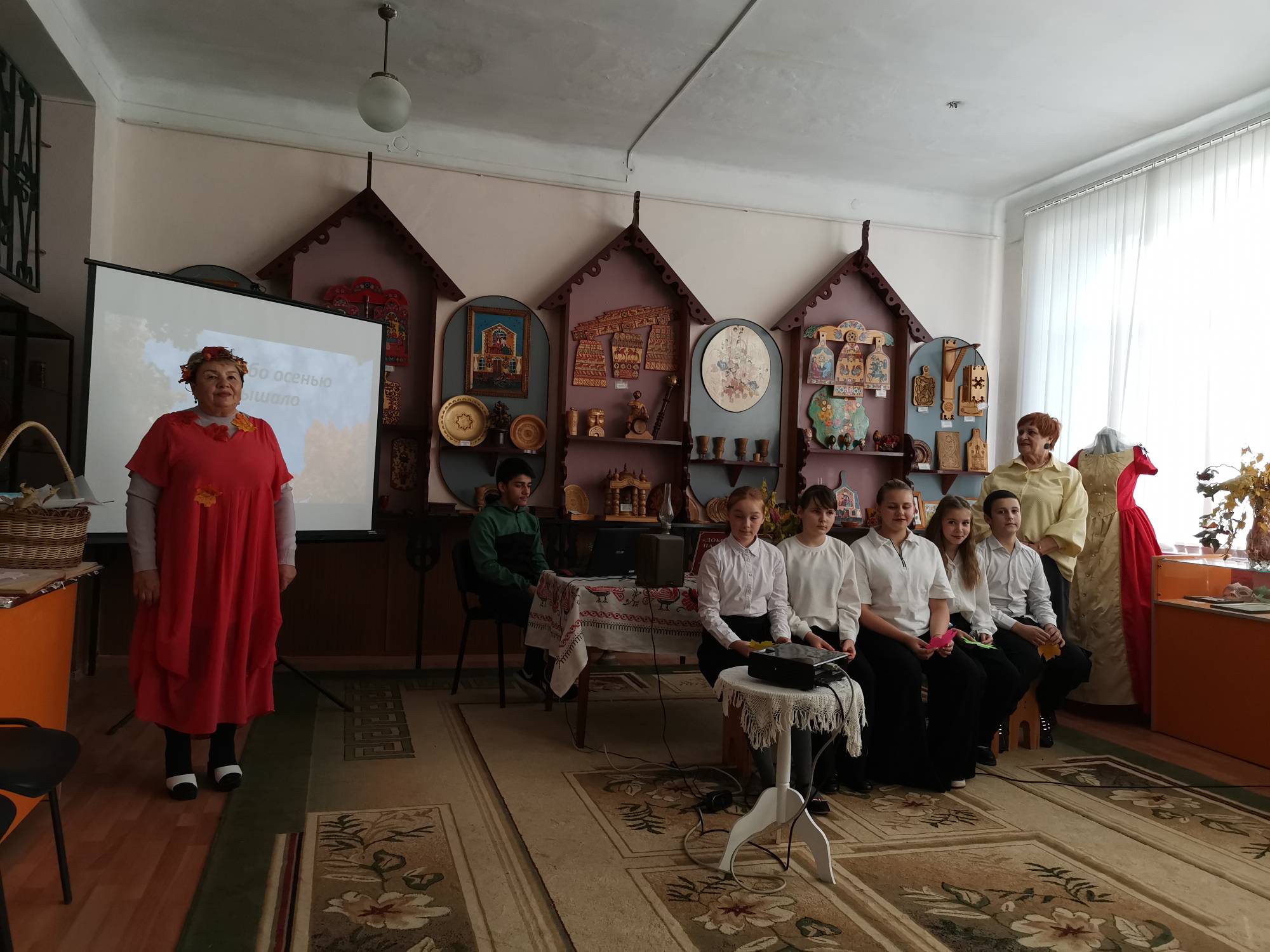 « Уж небо осенью дышало» - под таким  названием на базе школьного музея Таганрогского филиала ГКОУ РО «Ростовская-на-Дону санаторная школа-интернат № 74» прошел вечер поэзии. Воспитатель Котлярова З.Р. и педагог-библиотекарь Дудка С.Ю. подготовили для учащихся 5-7 классов очень интересное и увлекательное путешествие в мир поэзии. Ребята и взрослые читали стихи А.С Пушкина, С.Есенина, Ф.И. Тютчева и других поэтов. При подготовке к вечеру ребята нарисовали рисунки «Осенние пейзажи», которые украсили это мероприятие. В гости к ребятам пришла Баба Яга, которая загадывала загадки об осени, задавала каверзные вопросы, организовывала игры и угощала наливными яблочками. Учащимся и гостям вечера надолго запомнится теплая и веселая атмосфера, царившая на этом вечере поэзии.