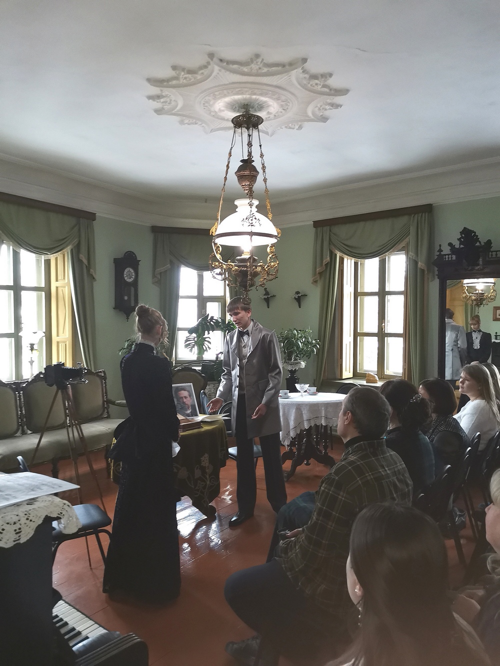 Чехов очень любил музыку. Слушание музыки давало писателю ощущение радости жизни. Пока в музее собирались гости, стены дома наполняли звуки флейты. Украшением данного мероприятия стала инсценировка рассказа А.П. Чехова «Размазня», которую исполнили воспитанники студии театральных миниатюр «Подмостки (руководитель Фролова Н.В.) Чупрун Демьян и Сурикова Арина.