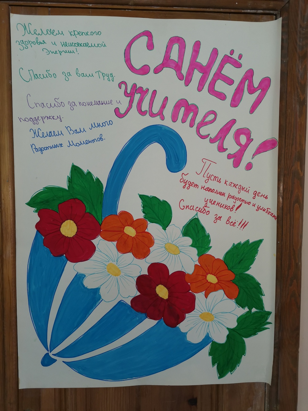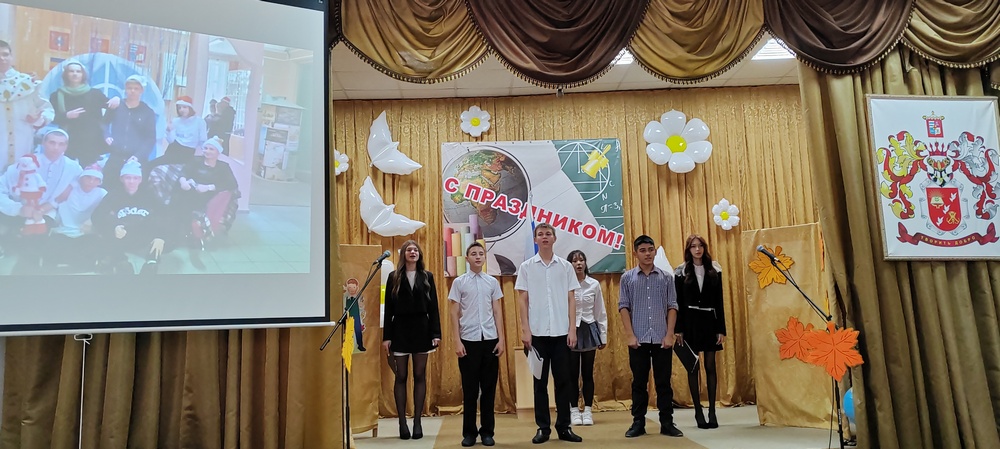 3 октября, в канун Всемирного Дня учителя, в Таганрогском филиале ГКОУ РО «Ростовская-на-Дону санаторная школа-интернат № 74» прошел калейдоскоп творческих дел, посвященных Дню Учителя. Прежде всего, учащиеся 11 класса на несколько уроков стали учителями, что позволило им убедиться, насколько нелёгок труд педагога. Корреспонденты школьной газеты подготовили специальный выпуск газеты «Наша жизнь», а каждый класс, втайне от педагогов, выпустил плакат с поздравлениями для учителей. Совет самоуправления позаботился о том, чтобы на переменах звучала праздничная музыка, были украшены двери классов и фойе, а отряды приготовили разнообразн6ые букеты с тематическими названиями. Завершением этого праздничного дня стала театрализованная программа «С любовью к учителям», в которой приняли участие все классы. Ребята подготовили стихи, сценки, песни, телепередачу и фильм о педагогах нашей школы. Выпускники разных лет прислали видео поздравления учителям, воспитателям и педагогам дополнительного образования, что особенно их тронуло. Праздничный день получился ярким, насыщенным и запоминающимся.