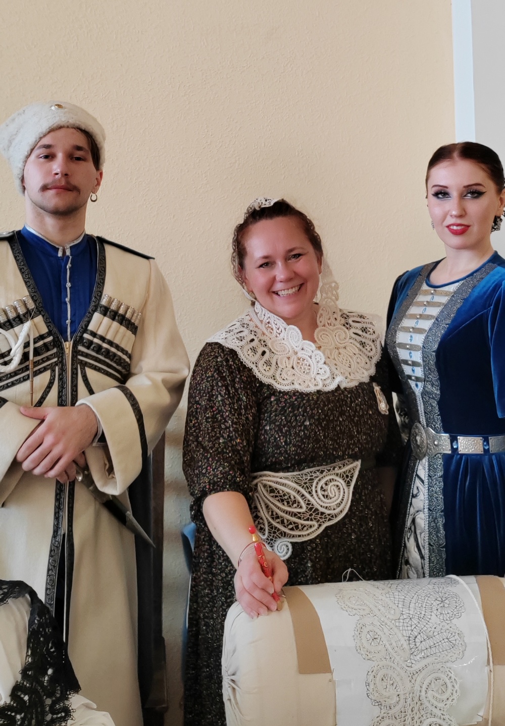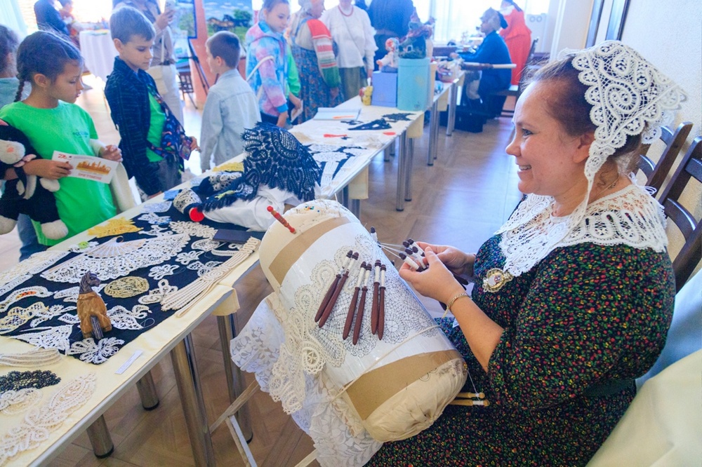 Мастер декоративно-прикладного искусства Сазоненко Е.А. приняла участие в выставке мастеров ДПИ и представила вниманию публики свои личные работы и работы своих воспитанниц, обучающихся в ГКОУ РО «Ростовская-на-Дону санаторная школа-интернат № 74» (Таганрогский филиал). В мастер-классе по кружевоплетению участвовали, наравне с девочками, и мальчики. Ребятам очень понравилось данный вид искусства, они с удовольствием прикоснулись к кружевоплетению на коклюшках и освоили основной прием плетения сплести-перевить.