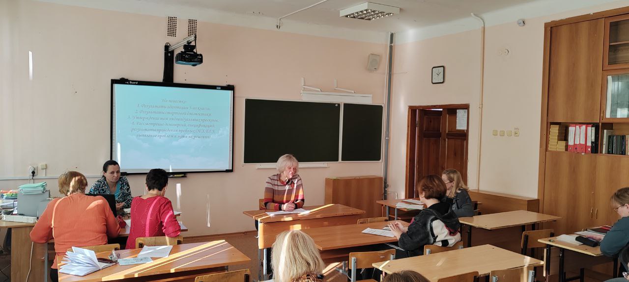 презентацию. Учителя-предметники акцентировали внимание на применение в учебном процессе различных эффективных технологий работы учащихся с низкой мотивацией. Учителя математики, истории, обществознания Колобова Г.В., Дозорова Л.А., Горбань А.С. поделились опытом работы по подготовке обучающихся к ОГЭ и ЕГЭ. Педагог-психолог Кузнецова Е.В. дала учителям рекомендации по работе с обучающимися 5 класса по итогам адаптационного периода.